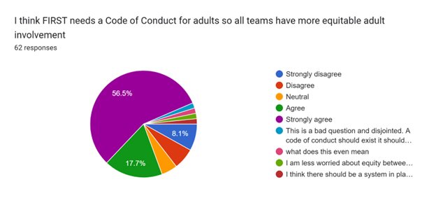 I think FIRST needs a Code of Conduct for adults so all teams have more equitable adult involvement.
